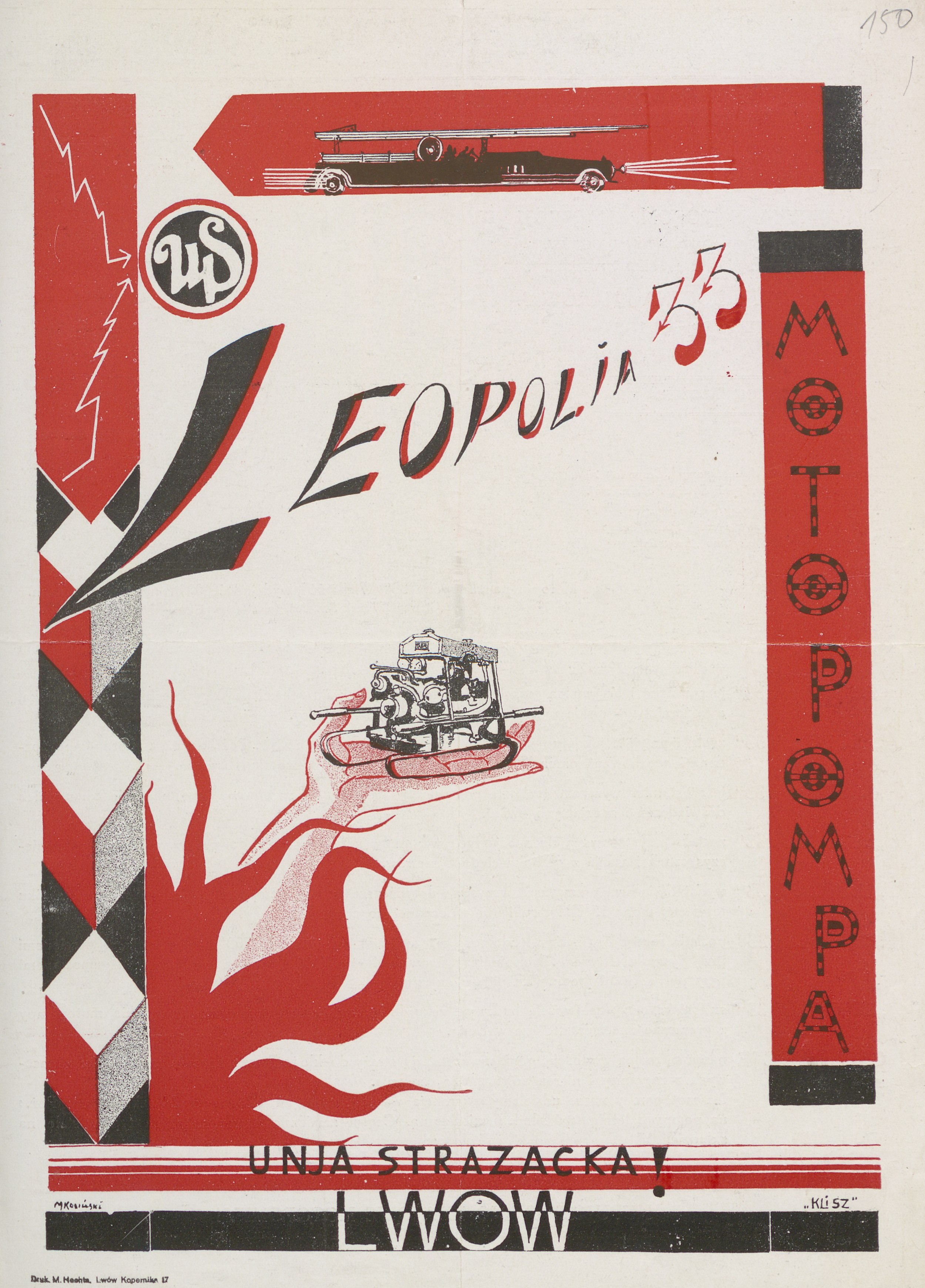 Motopompa Leopolia, Unia Strażacka Lwów. Zobacz i powiększ obraz. Reklamę pozyskałam z Archiwum Państwowego w Łodzi.