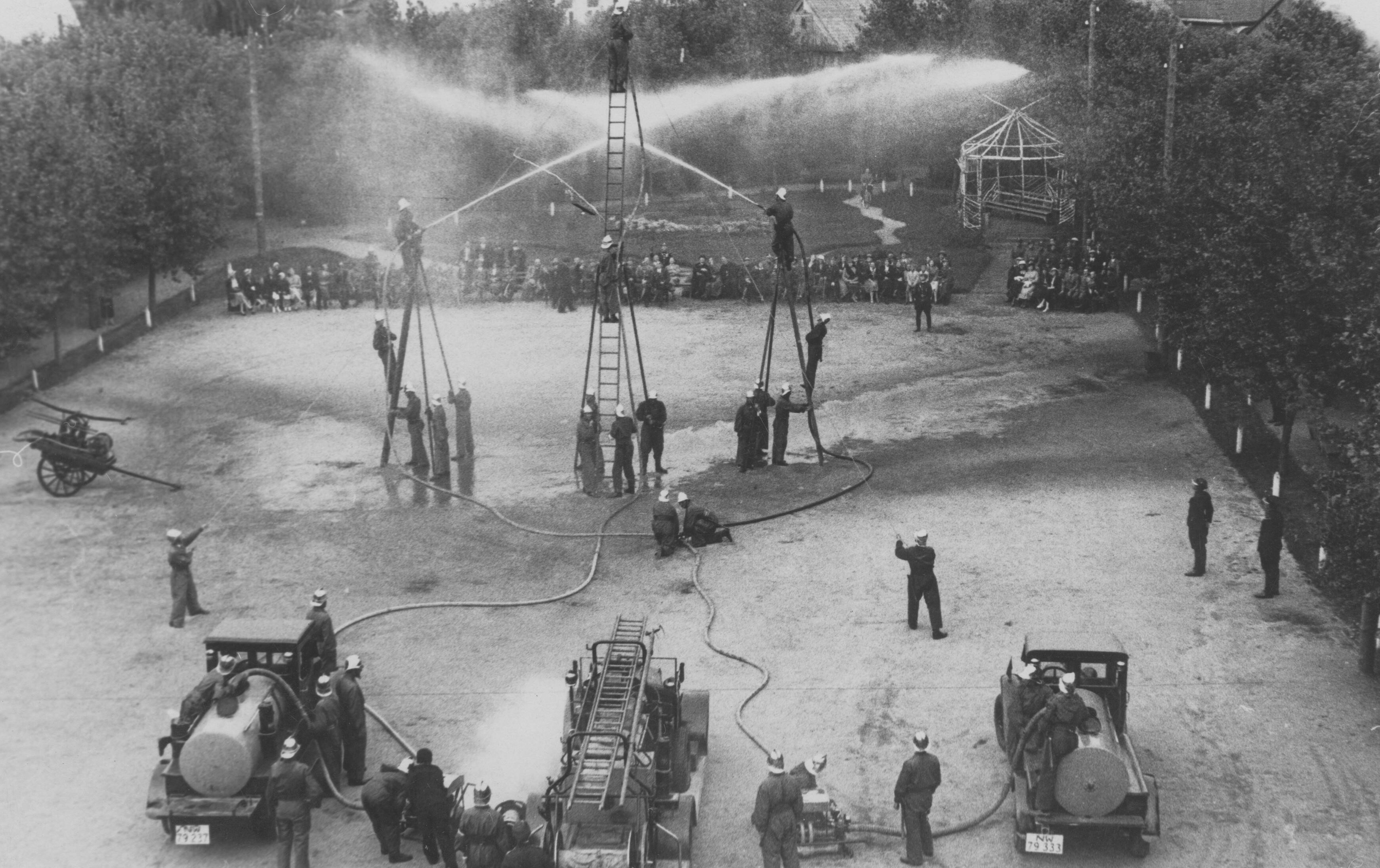 Fotografia z 1933 r. w zb. NAC, przedstawia jednostkę straży pożarnej lub jednostki podczas pokazu ćwiczebnego. Na ujęciu widoczne m.in. żeliwne cysterny, samochód gaśniczy, sikawka przenośna osadzona na wózku dwukołowym, węże i drabiny. Ćwiczeniom straży przygląda się publiczność. Opis Narodowego Archiwum Cyfrowego sugeruje, że zdjęcie to zostało wykonane na okoliczność odbywającego się kursu dla naczelników rejonowych. Jest to całkiem prawdopodobne. Pokaz odbył się w Baranowiczach w II RP w województwie nowogródzkim.