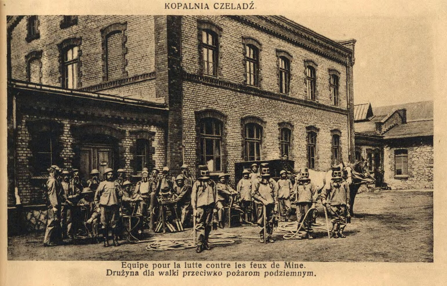 W galerii multimediów: Drużyna do walki przeciwko pożarom podziemnym z kopalni Czeladź. Dokument wizualny z pocz. XX wieku w zb. FBC - domena publiczna.