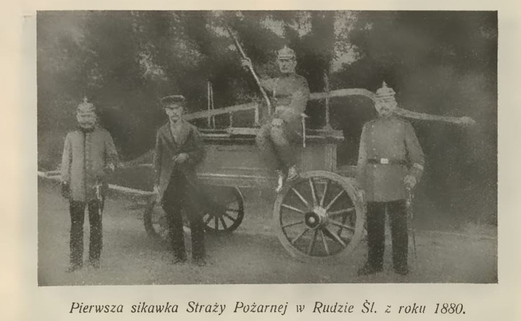 Na zdjęciu strażacy z Rudy Śląskiej ze swoją pierwszą czterokołową sikawką z 1880 roku zapewne niemieckiego lub austriackiego producenta. Na fotografii tej co prawda nie możemy dostrzec w pełni mechanizmu pompy, ale zauważamy charakterystyczną rurę skrętną. Sikawki tego typu raczej budowane były w dawnych czasach, aniżeli w XIX wieku. W epoce industrialnej rzadko już można było spotkać taki mechanizm, aczkolwiek w muzeum, w którym pracuję zachował się podobny obiekt. Sikawkę tę zbudował pewien niemiecki ludwisarz w roku 1884.
