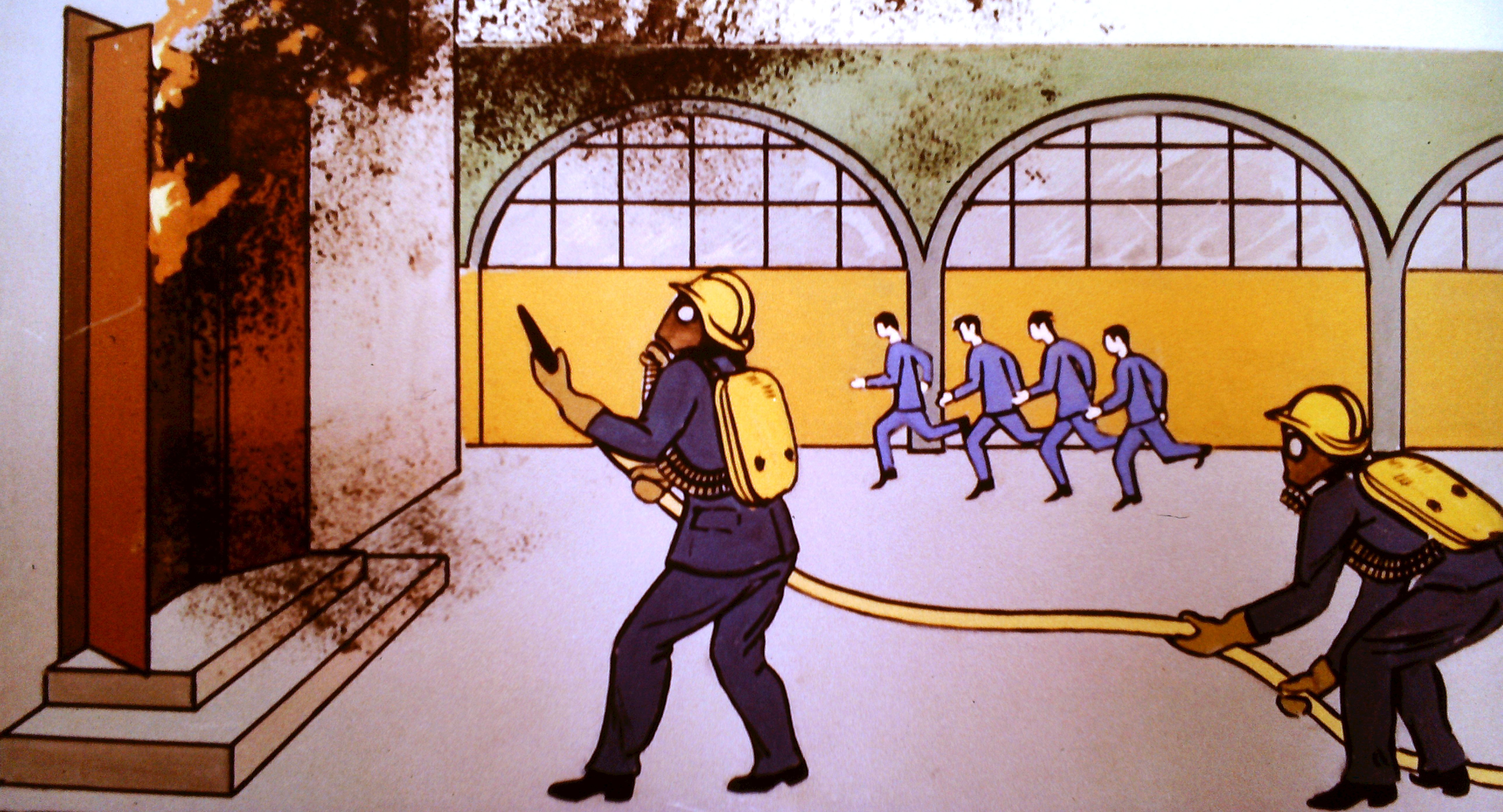Autorem ilustracji pt. „Obowiązki pracowników w zakresie ochrony przeciwpożarowej”, jest Roman Szałas (1914-1998) – polski grafik, plakacista i malarz. W latach 1931-1937 studiował na warszawskiej ASP. Jego prace znajdują się zapewne w zbiorach wielu muzeum w tym Muzeum G. Bocaccia w Certaldo we Włoszech. Jak możemy się przekonać zaprojektował również serię ilustracji dla propagowania BHP w zakładach pracy w zakresie ochrony przecipwżarowej. W zajawce - jedna z nich o treści: "W razie podejrzenia, że w zagrożonym obiekcie, pozostali ludzie należy natychmiast podjąć akcję ratowniczą. Jeśli istnieje potrzeba, ratownicy powinni być wyposażeni w sprzęt ochronny.W razie podejrzenia, że w zagrożonym obiekcie, pozostali ludzie należy natychmiast podjąć akcję ratowniczą. Jeśli istnieje potrzeba, ratownicy powinni być wyposażeni w sprzęt ochronny".