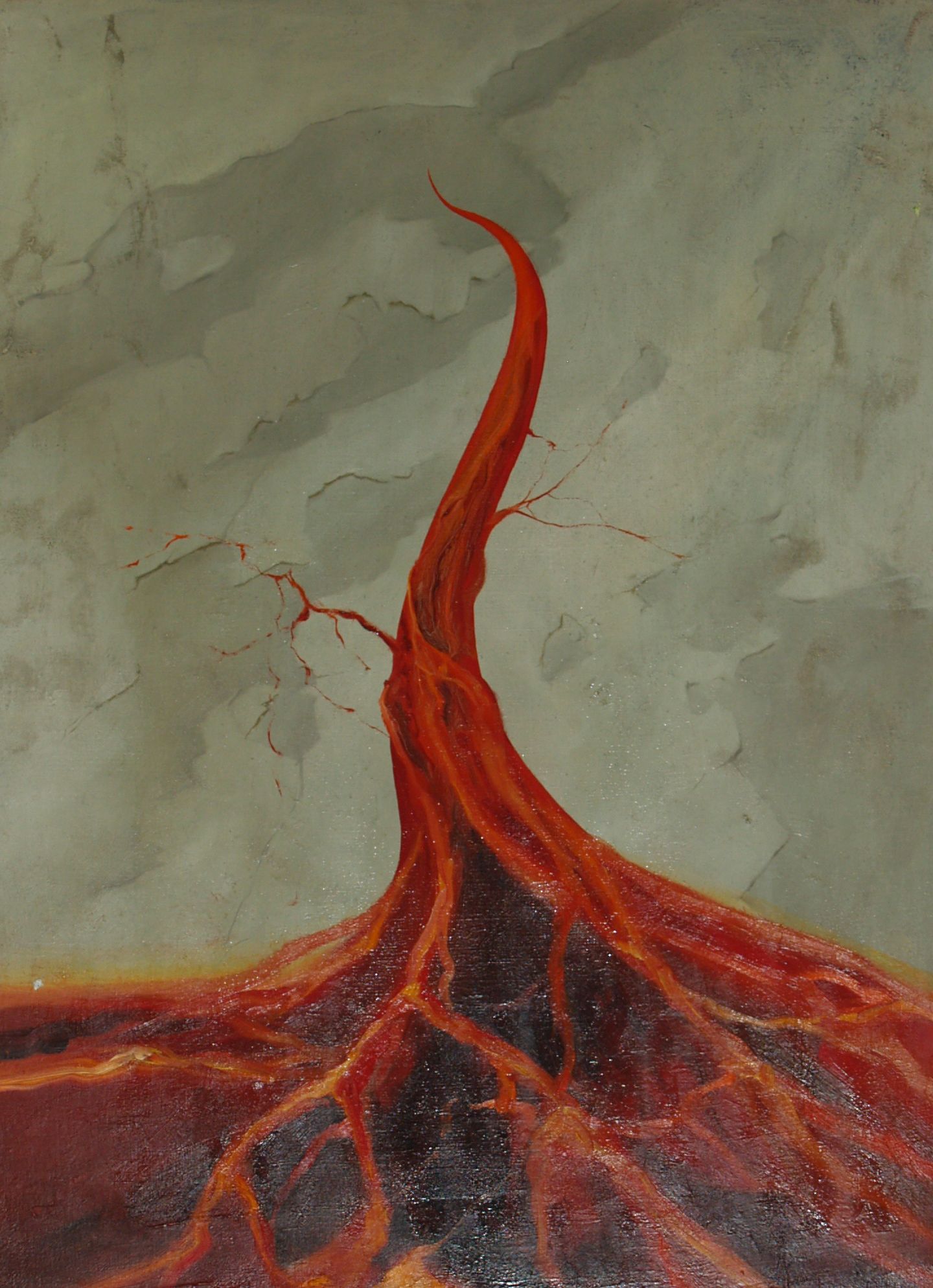 Jak wiecie z poprzednich artykułów z tematyki sztuka poż pod lupą, w latach 70. i 80. XX w. na terenie muzeum odbywały się plenery malarskie. W naszej strażackiej sztuce nie brakuje zatem motywów z ochrony przeciwpożarowej. Ten obraz nie został zatytułowany, nie znam też nazwiska artysty który go namalował. Dla mnie pozostanie alegorią płonącego konara i będzie nawiązywał do pożarów lasów.