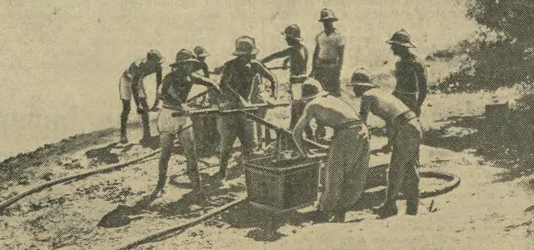 Na przełomie lat 1935–1936 trwała tzw. druga wojna włosko-abisyńska. Oto obrazek z frontu południowego tamtego konfliktu. Fotografia w multimediach zajawki przedstawia włoskich żołnierzy pompujących wodę z rzeki Dżuby w Somalii przy użyciu sprzętu strażackiego, tj. sikawek przenośnych. Zdjęcie przedstawia sposób (zapewne jeden z wielu) zorganizowania dostaw wody dla oddziałów. Należy podkreślić, że czynności polegające na pompowaniu miały także na celu odfiltrowanie wody z zanieczyszczeń. Zdjęcie, które udostępniłam na blogu zostało opublikowane w Ilustrowanym Kurierze Codziennym z 4 stycznia 1936 r. Zajawka, w której w multimediach możemy zobaczyć m.in. frontowe sikawki jest drugą publikacją blogową na podobny temat, kiedy żołnierze korzystali ze sprzętów strażaków na frontach różnych wojen. Koniecznie przeczytajcie artykuł pt. „Fotografia frontowa”.