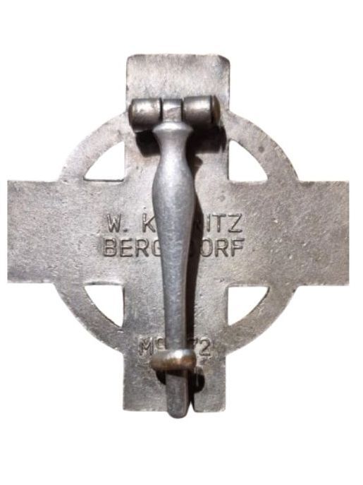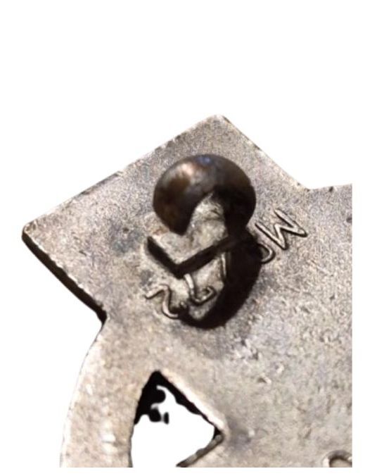 Zbieg okoliczności sprawił, że niedawno od innego kolekcjonera otrzymałam do identyfikacji zdjęcia bardzo podobnego honorowego odznaczenia, straży pożarnej I klasy III Rzeszy z lat 1936-1938 (niem. Reichsfeuerwehr-Ehrenzeichen 1. Klasse), stanowiącego nagrodę za zasługi w pożarnictwie dla czynnych strażaków, którzy wyróżnili się w straży pożarnej, ryzykując życie (zobacz i powiększ multimedia). Oryginał krzyża nie posiadał wstążki i wykonany był z posrebrzanego brązu, posiadał na awersie czerwoną emalię oraz czarną lub czerwoną swastykę. Niektóre wersje na rewersie posiadały sygnatury wytwórcy np. W. Kolwitz Bergedorf M9/72 lub W. Kolwitz (tak jak zresztą widzimy to na zdjęciach identyfikowanego przedmiotu). Rewers zdobiła także pionowa, wypukła igła stanowiąca zapięcie w kształcie agrafki (szpangi). Oryginały sygnowane W. Kolwitz posiadały rozmiar 43x43 mm.