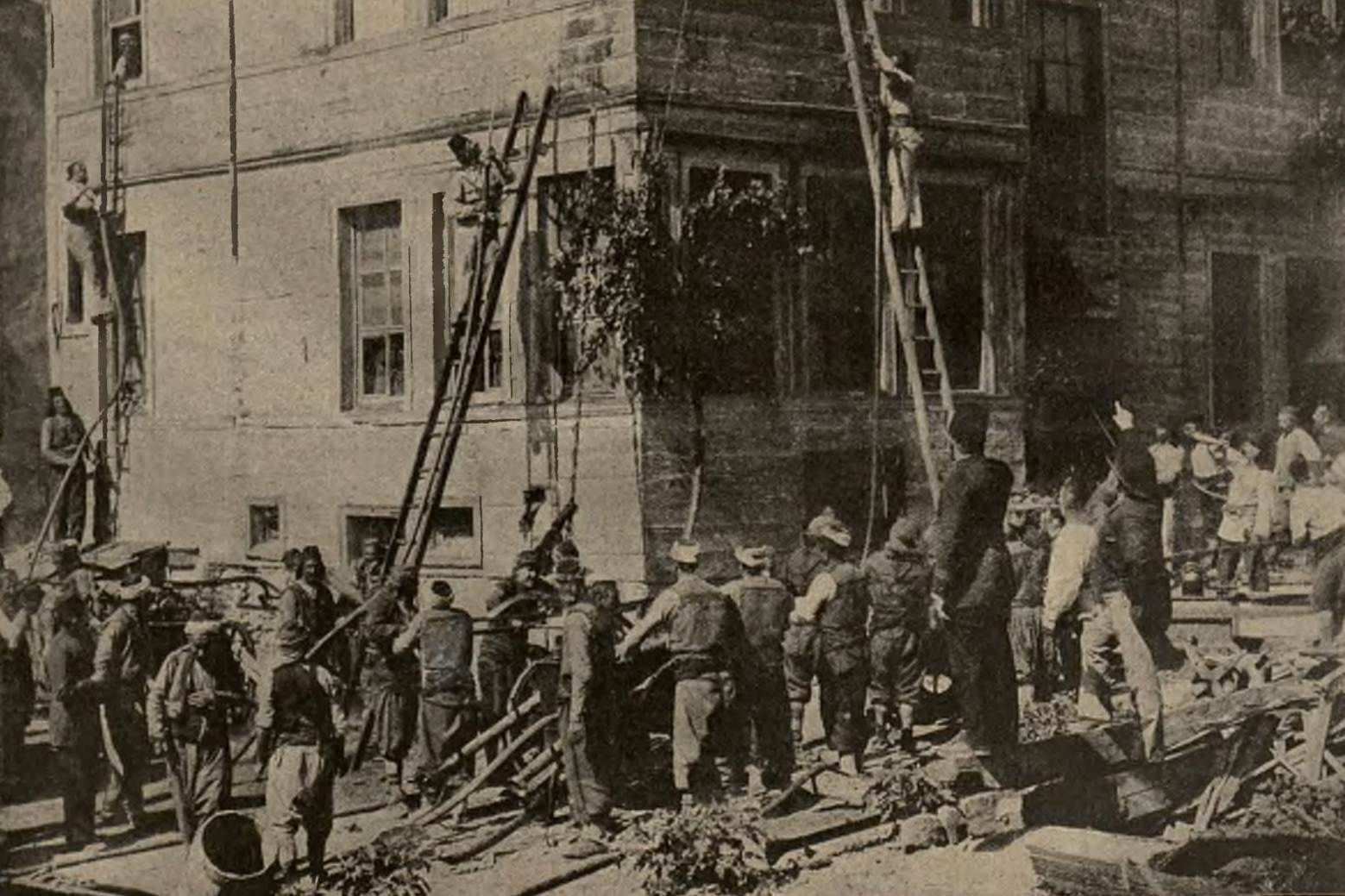 W dzisiejszej zajawce możecie zobaczyć trzy zdjęcia, które nawiązują do pożaru Konstantynopola z 23 sierpnia 1908 r. Jedno z nich (tureccy strażacy z sikawką) jest najbardziej spopularyzowanym dokumentem wizualnym także koloryzowanym, który możecie spotkać w sieci nawet formie widokówki. Druga z fotografii przedstawia akcję ratunkową podczas pożaru. Na trzecim zdjęciu – XIX wieczna sikawka, którą znalazłam w domenie publicznej na stronie tureckiego muzeum pożarnictwa. (Porównajcie ją z archiwalnym zdjęciem i zwróćcie uwagę na jej walory artystyczne i estetyzujące). W sierpniu 1908 r. spłonęło ponad kilka tysięcy obiektów (domów mieszkalnych, instytucji publicznych i prywatnych). Ponad 20 tysięcy obywateli tego miasta ucierpiało. Twierdzono, że Konstantynopol został podpalony przez zwolenników starego porządku w wyniku czego zaczęły się aresztowania rzekomych podpalaczy. To był czas, w którym Turcja zmieniała się. W miastach organizowane były manifestacje na rzecz praw obywateli i konstytucji. Zbliżały się też wybory do tureckiego parlamentu i można było na ulicach miast bez żadnych obaw dyskutować na temat polityki i rządów. Przeczytajcie o tzw. rewolucji młodotureckiej, a dowiecie się więcej na temat sytuacji społeczno-politycznej tego kraju na początku XX wieku.