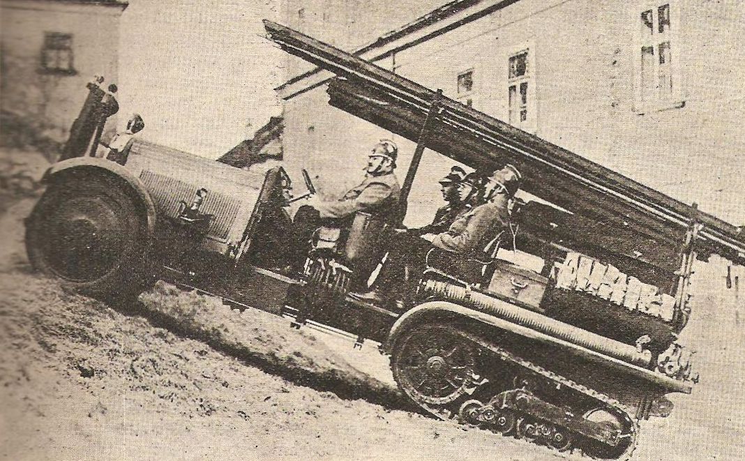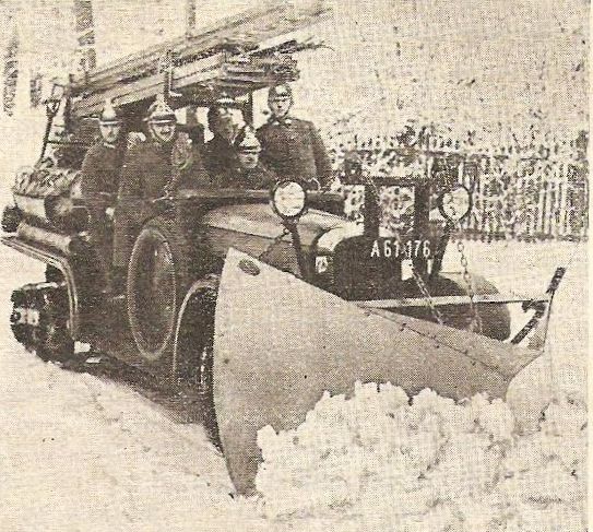 Motoryzacyjny dosyć oryginalny projekt, który miał poruszać się po terenie trudno dostępnym? Owszem i nie tylko. Na pierwszym zdjęciu samochód straży pożarnej na podwoziu gąsienicowym marki Citroën wzorowany na podwoziu półgąsienicowym prawdopodobnie Citroëna C6 P19. [1] Jeżeli zaś chodzi o nadwozie, tj. zabudowę pożarniczą wraz z jej wyposażeniem, to niestety nie potrafię ustalić nazwy producenta bądź producentów. Na drugiej fotografii jak się domyślam ten sam pojazd, do którego zamontowano zgarniacz śniegu (pług śnieżny). Na zdjęciu widoczny nr rejestracyjny A61176. Przypuszczam, że pojazd ten w historii pożarniczej motoryzacji i użytkowania przez straż pożarną (polską czy zagraniczną?) stanowił wyjątek. Wręcz moglibyśmy mówić o prototypie lub pojedynczym egzemplarzu. Obie fotografie zostały wykonane w latach 30. XX wieku i opublikowane w Przeglądzie Pożarniczym w nr 7 z 1933 r.
