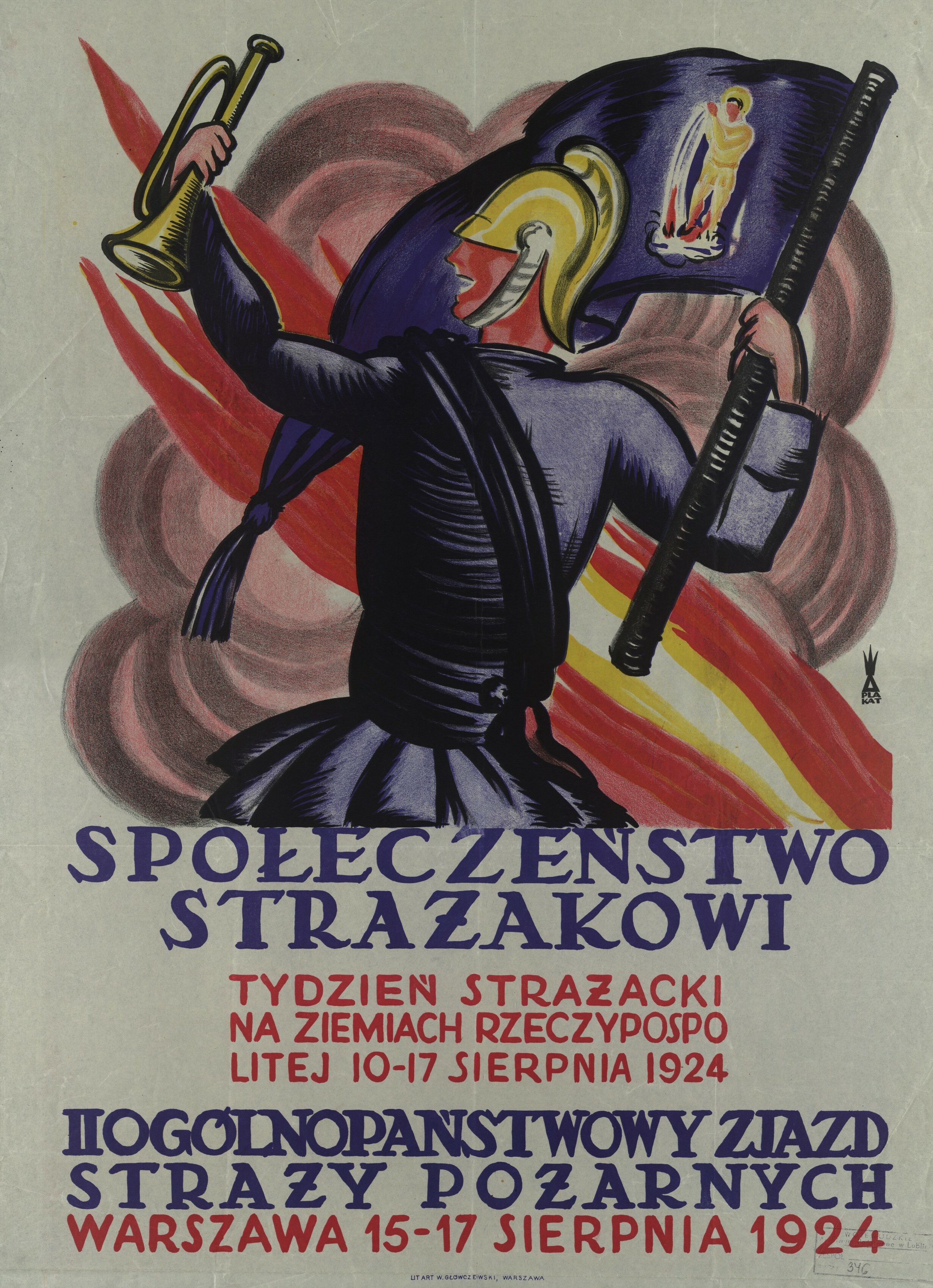 Na przykładzie tego oto plakatu z kolekcji afiszy i druków ulotnych Archiwum Państwowego w Lublinie, sygn. 35/632/0/4.3/346. Społeczeństwo Strażakowi. Tydzień strażacki na Ziemiach Rzeczypospolitej. II Ogólnopaństwowy Zjazd Straży Pożarnych w Warszawie 15-17 sierpnia 1924 r. litografia barwna (wydawca) W. Główczewski, Warszawa.
