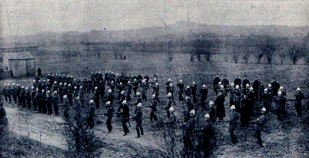 Na fotografii częstochowska straż pożarna podczas ćwiczeń z wychowania fizycznego i przysposobienia wojskowego. Kwiecień 1925 r. Nie było to pierwsze, ani też ostatnie ćwiczenia wojskowe, w których brały udział polskie straże pożarne okresu międzywojennego, a nawet i wcześniejszego – zaborowego. Fotografia została opublikowana w Przeglądzie Pożarniczym i opatrzona ideowym komentarzem w brzmieniu: