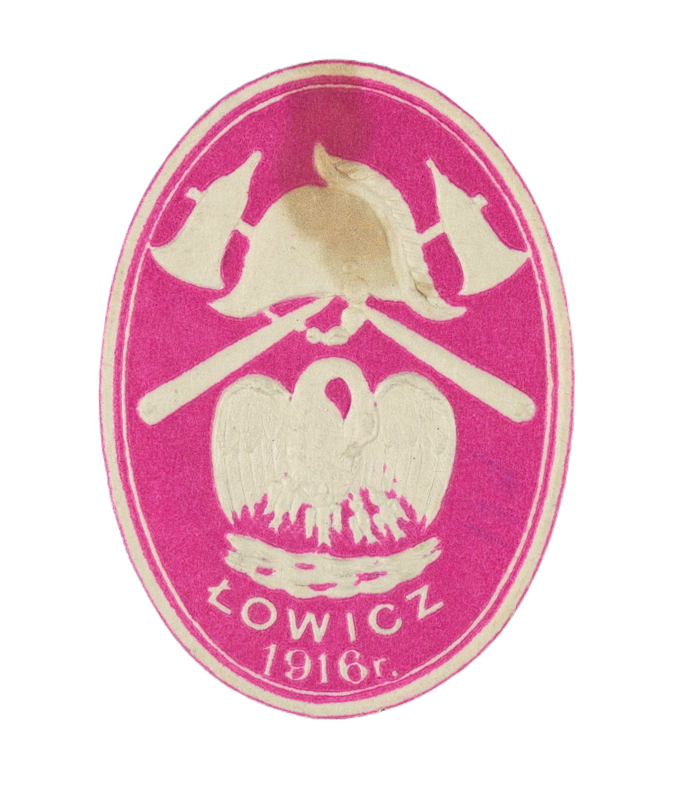 Zalepka ochotniczej straży ogniowej z Łowicza, 1916. Domena publiczna FBC. Post jest nawiązaniem do zajawki pt. „Pelikan łowickiej straży” oraz artykułu pt. „Strażacka zalepka z orłem wz. 17”. Tekst ten możecie przeczytać na stronie głównej bloga.