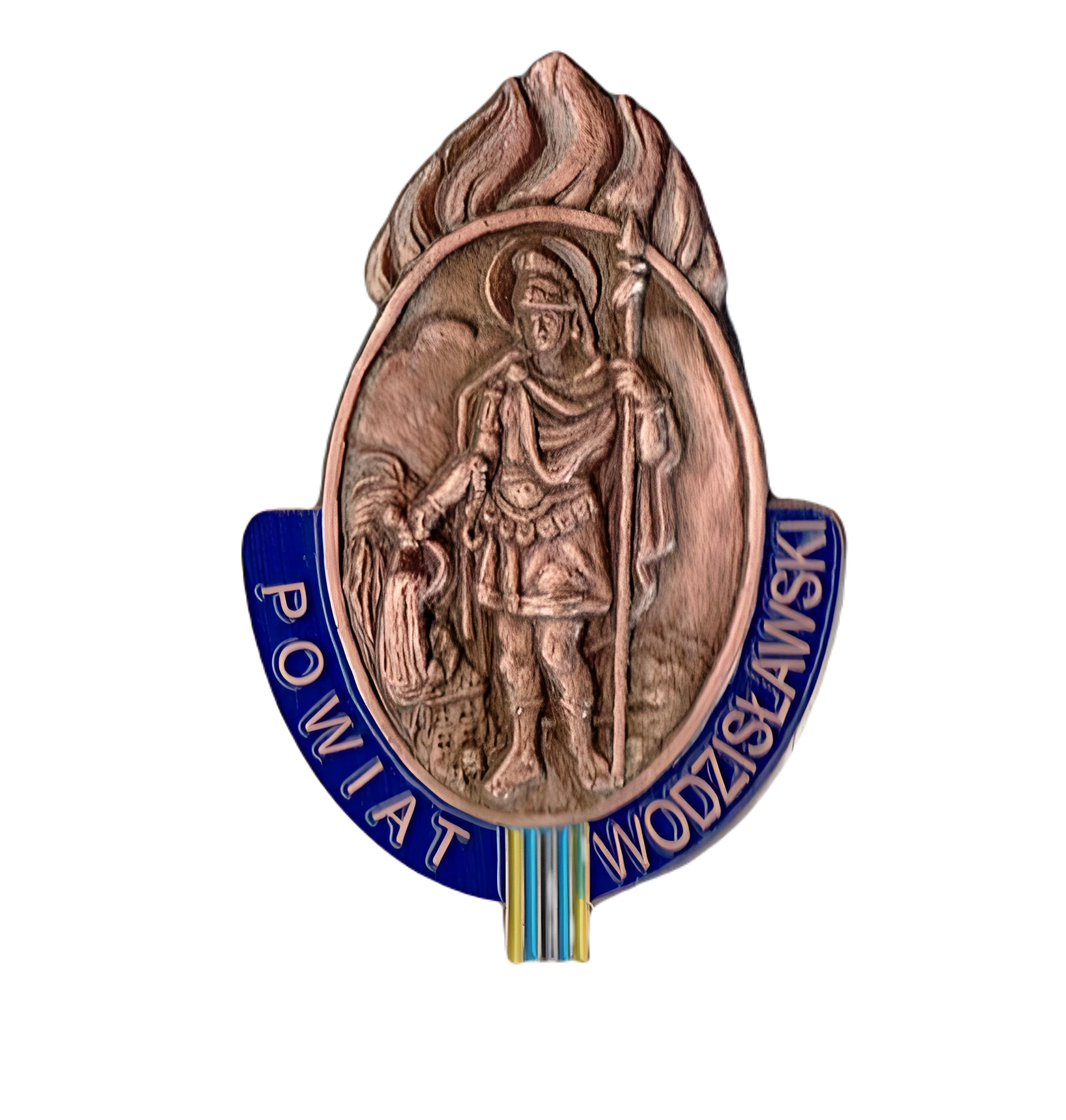 Znaczek pamiątkowy na wkrętce, jednostronny ze stylizowanym płomieniem i wizerunkiem św. Floriana. W otoku napis: „POWIAT WODZISLAWSKI”. Polska, 2. poł. XX w. Miedź i emalia. Taki oto walor falerystyki strażackiej już niebawem wprowadzę na stan inwentarza muzealnego Centralnego Muzeum Pożarnictwa w Mysłowicach. W tym roku bardzo dużo pozyskaliśmy nabytków. Były i są to zróżnicowane kolekcje nie tylko z dziedziny falerystyki. Niektóre karty ewidencyjno-naukowe posiadają bogaty opis muzealia, dla którego istniała podstawa do badań nad obiektem. W przypadku tego znaczka nie znam do końca jego pochodzenia. Nie wiem np. kto był autorem tego projektu, w ilu sztukach był wyprodukowany i nie znam okoliczności, dla której został wykonany. Być może z czasem uda mi się dotrzeć do tych informacji. Praca, która polega na dokumentowaniu zbioru i opracowywaniu kart muzealnych tak naprawdę nigdy się nie kończy. Jest ona trudnym procesem, który nie zawsze przynosi pożądany efekt. Zachęcam wszystkich by zwracali uwagę na to co nas otacza, ponieważ jutro, pojutrze, za sto lat świat będzie zupełnie inaczej wyglądał. d.j. [CMP]
